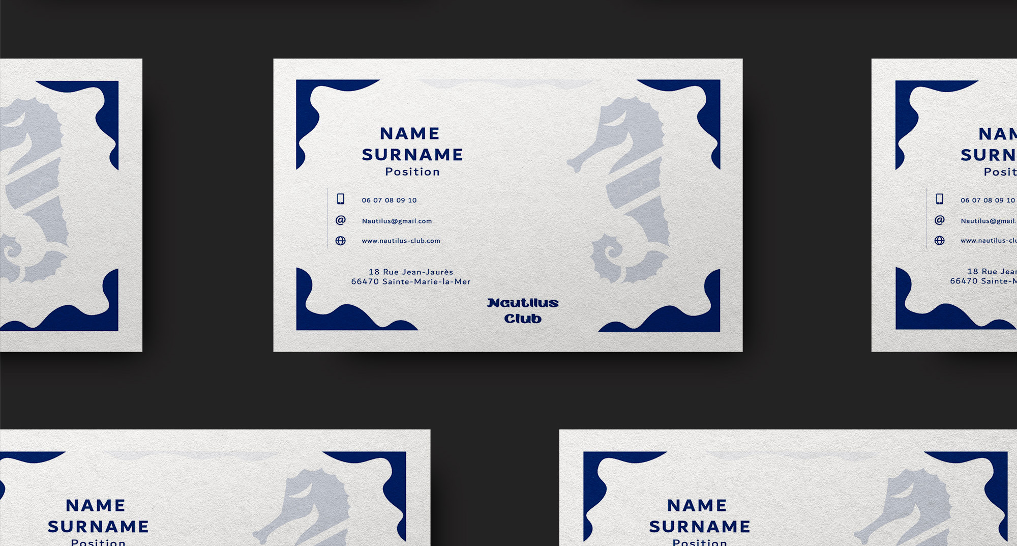 Projet réalisé lors de ma formation d'infographiste, le but était de créer un logo pour un club de plongée, qui se nommé le "Nautilus Club".